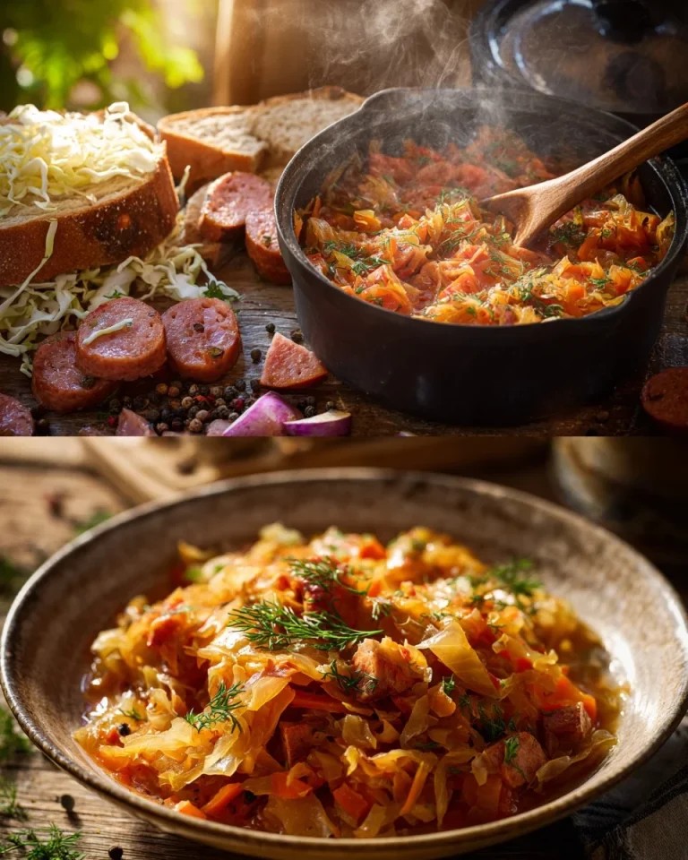 Składniki (4 porcje): 1 średnia 🥬 główka młodej kapusty 250 g 🥓 wędzonej kiełbasy 1 duża 🧅 cebula 2 🥕 marchewki 2 łyżki 🧈 masła lub oleju 2 łyżki 🥫 koncentratu pomidorowego 100 ml 💧 wody lub bulionu 🌿 Koperek do posypania 🧂 Sól, pieprz, ziele angielskie, liść laurowy 👨🍳 Sposób przygotowania: 1️⃣ Kapustę poszatkuj … Read more