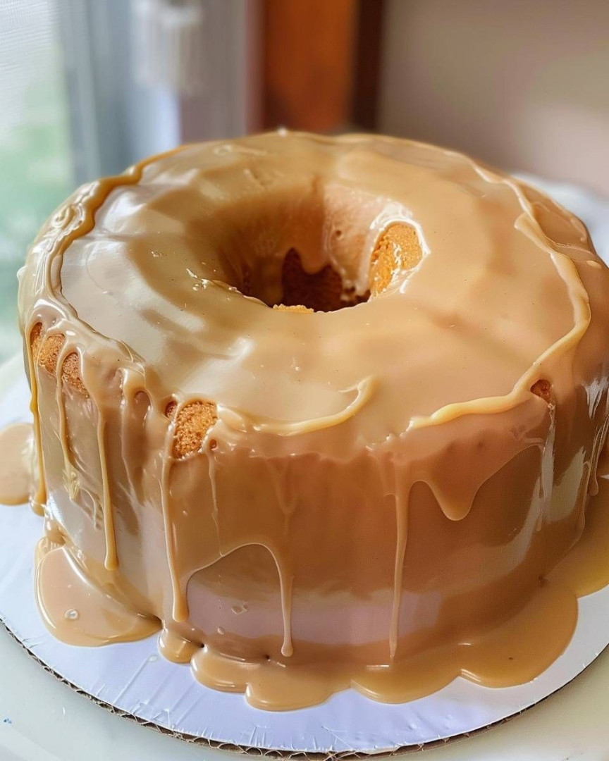 Aksamitne, maślane ciasto funtowe polane pysznym, domowym sosem karmelowym — delikatne w środku, złociste na zewnątrz i rozpływające się w ustach