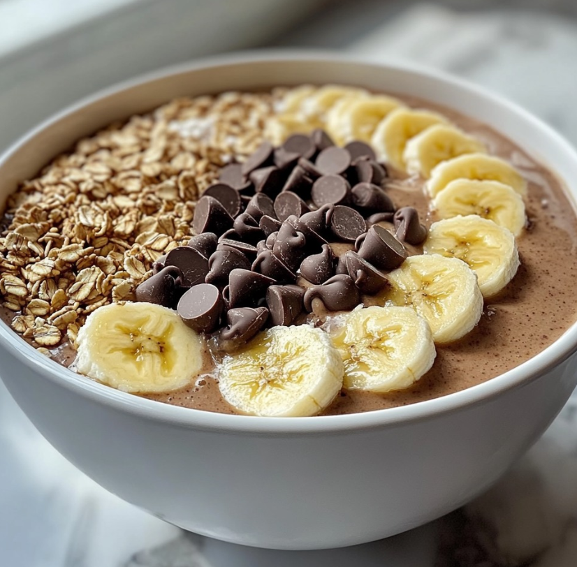 Miska smoothie z masłem orzechowym i kawałkami czekolady i bananów 🍌🥜🍫