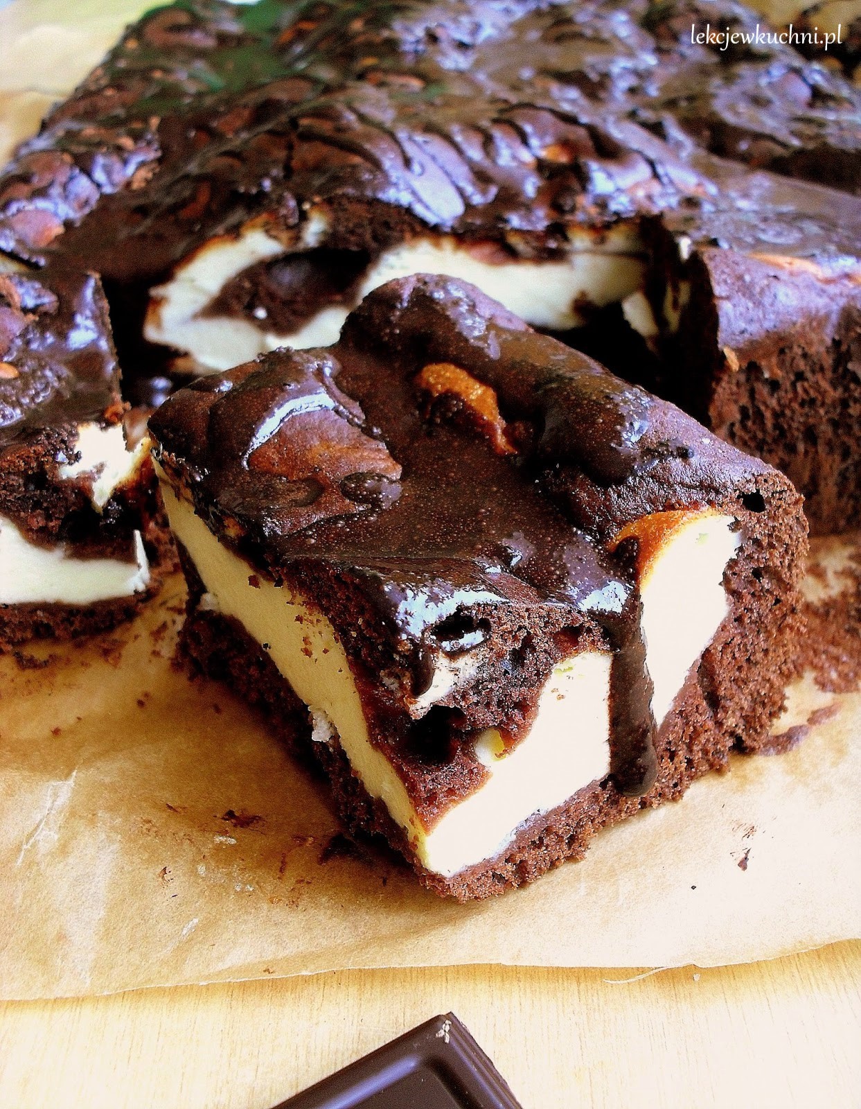 Serniki i murzynki to zdecydowanie moje ulubione ciasta, dlatego kiedy znalazłam przepis, który łączył oba te wypieki, wiedziałam, że muszę z niego skorzystać. Ciasta czekoladowe z masą serową w środku można znaleźć na blogach pod wieloma nazwami: jedni nazywają je Cielaczkiem, inni Izaurą. Dla mnie to po prostu pyszny sernik w murzynku (albo murzynek z serem). Bardzo ważne, by do przygotowania ciasta użyć dobrej jakości ciemnej czekolady (gwarantuje brak zakalca), a przede wszystkim dobrego sera – ja użyłam bardzo dobrej jakości sera z wiaderka, dzięki czemu nie musiałam dodawać do masy serowej dużej ilości masła. Polecam, smacznego:)