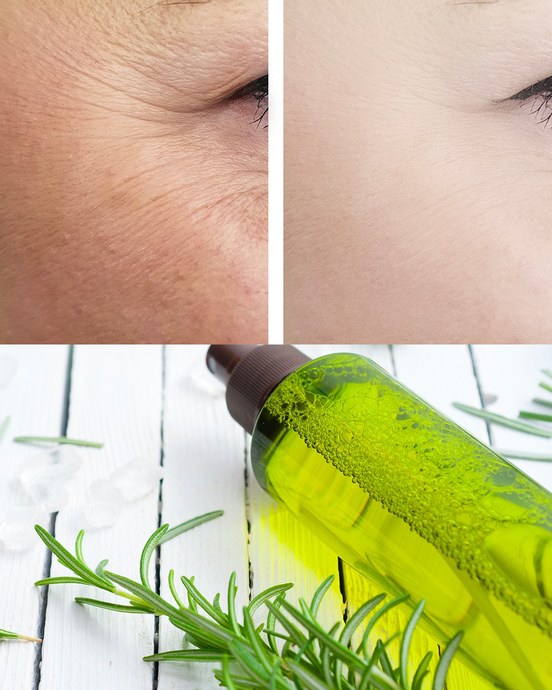 Rozmaryn jest bogaty w kwas rozmarynowy, silny przeciwutleniacz, który pomaga zwalczać wolne rodniki odpowiedzialne za przedwczesne starzenie się skóry. Dzięki właściwościom pobudzającym krążenie krwi rozmaryn wspomaga również regenerację komórek, co pozwala wyraźnie zmniejszyć widoczność zmarszczek i przebarwień.