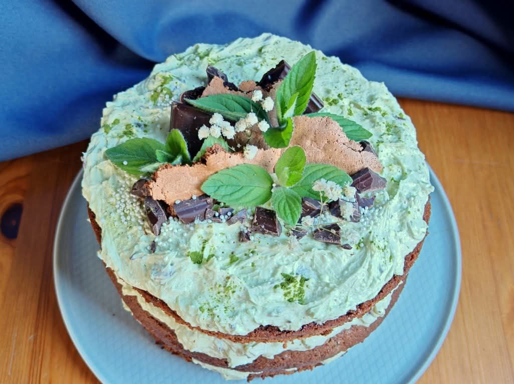 Torcik w stylu naked cake o smaku inspirowanym czekoladkami After Eight. Było pysznie, lekko orzeźwiająco.